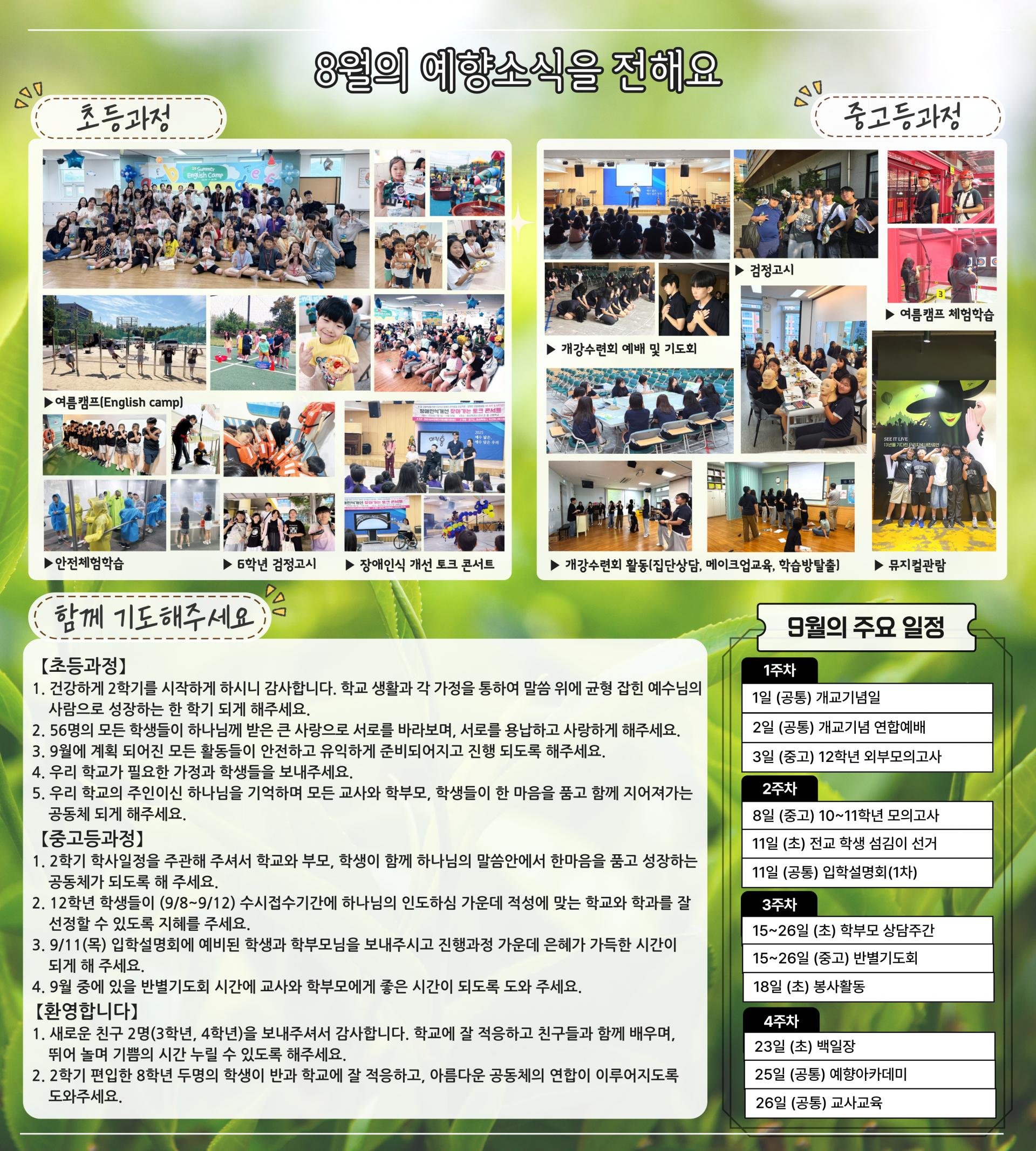 예수향남기독학교 초등과정 , 중고등과정