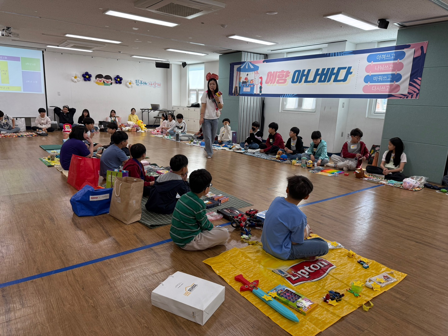 오전에는 아나바다 행사를 하고, 5개의 부스활동을 하고